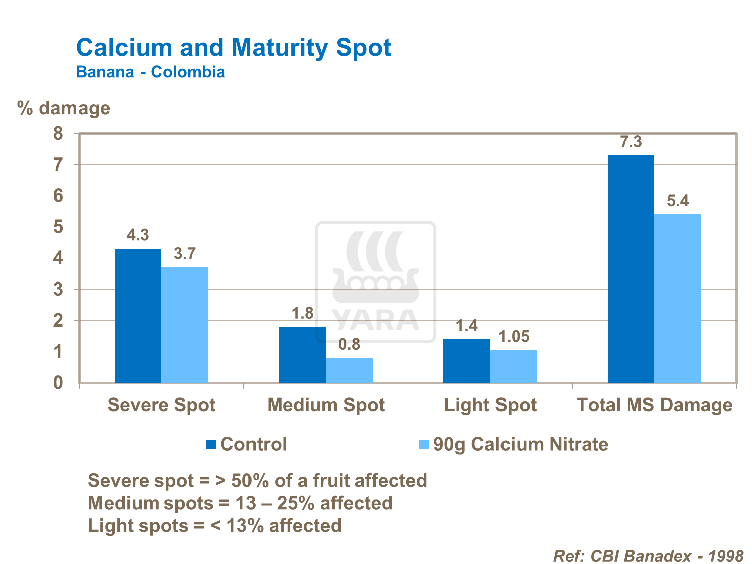 Calcium also decreases the incidence of maturity spot, stain and bronzing on the fruit at harvest.