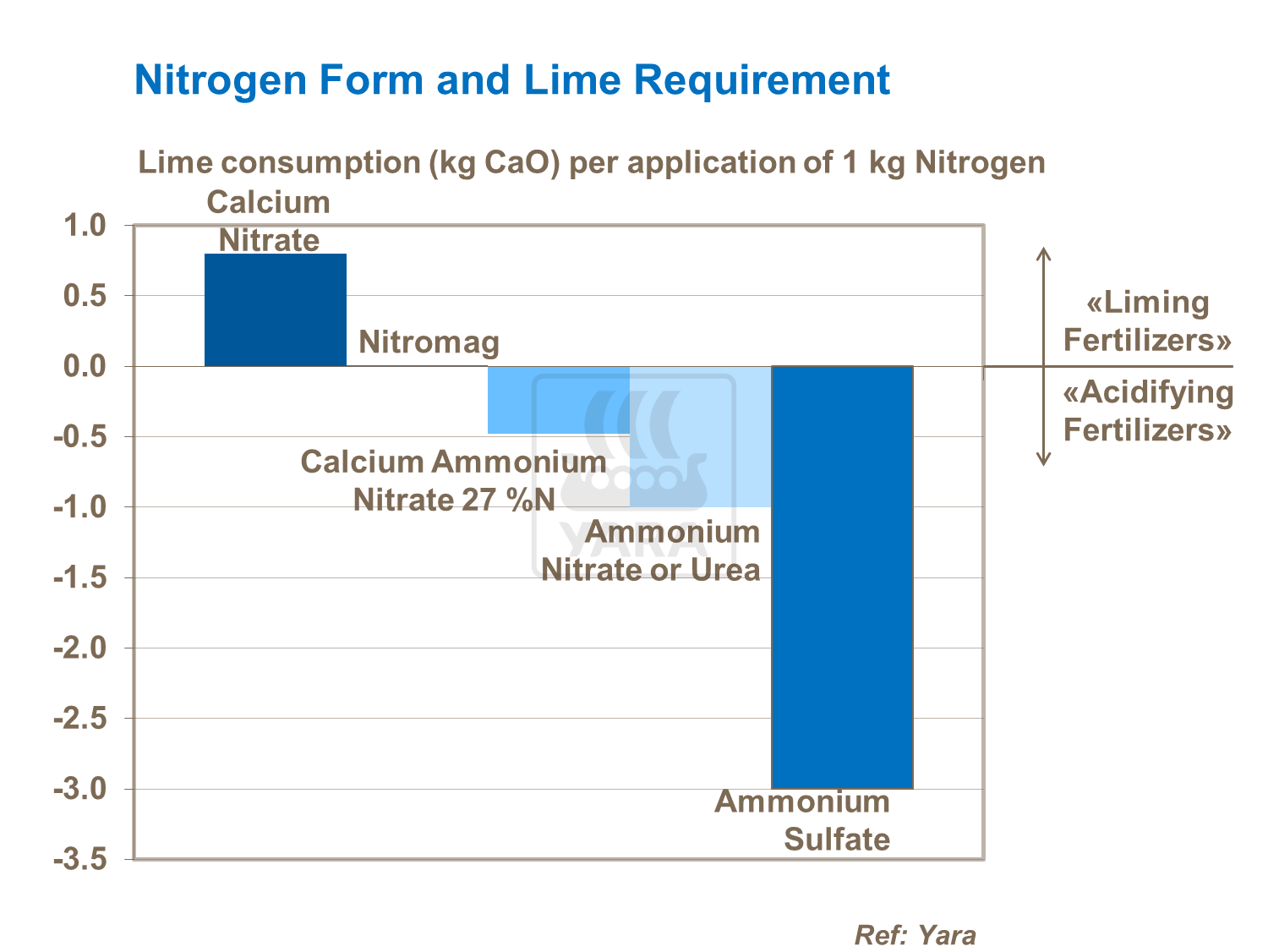 Source of nitrogen is particularly important. Urea-based fertilizers have an effect on long term soil acidity, reducing the pH and increasing the requirement for lime.