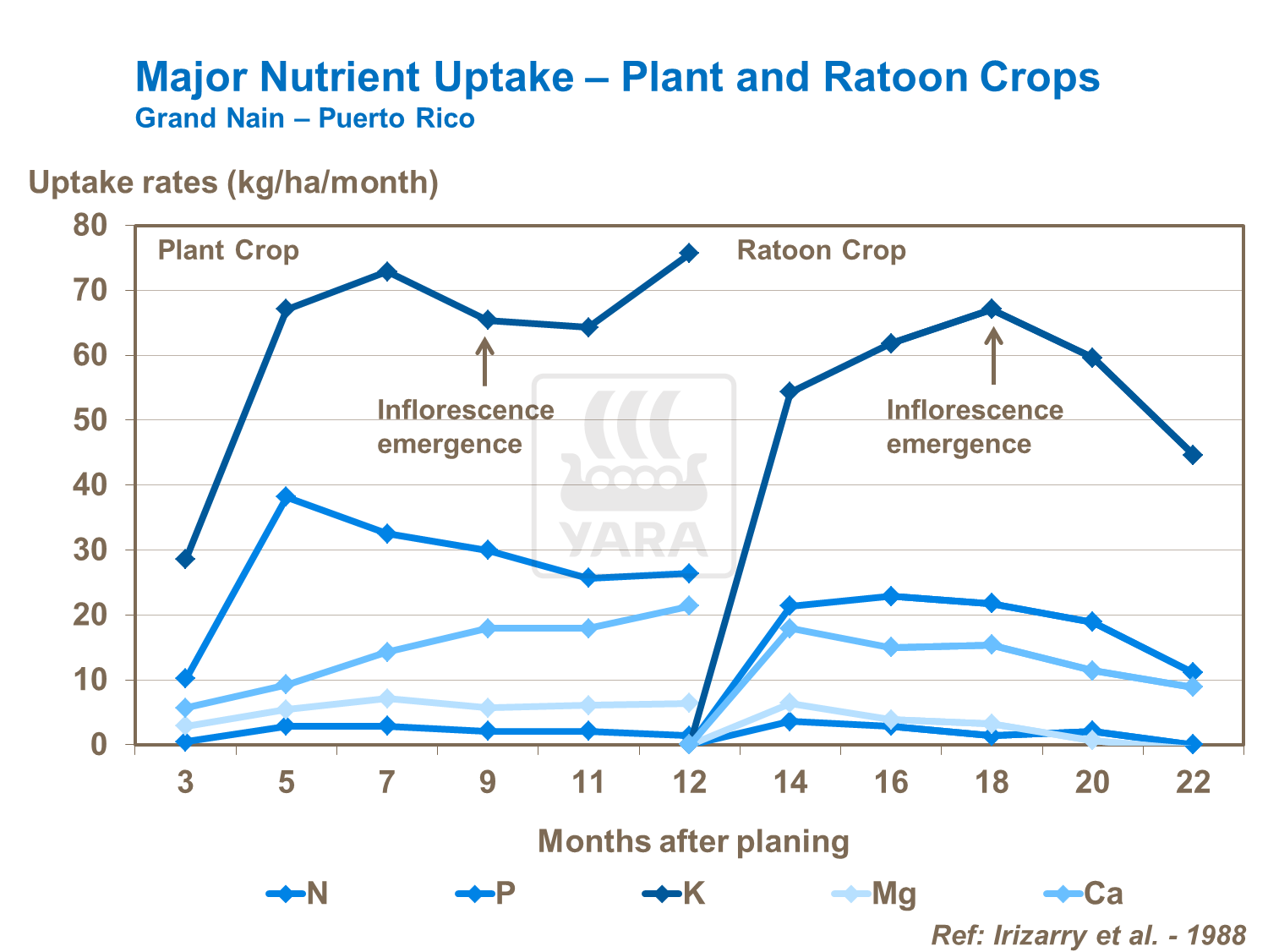 Not only does potassium have a large effect on fruit yield it is also very important in maintaining or improving fruit quality. Peak demand is around flowering, but crops utilize potassium throughout the season.