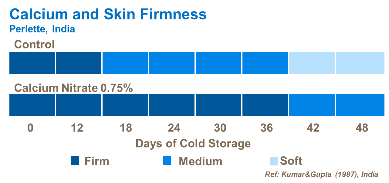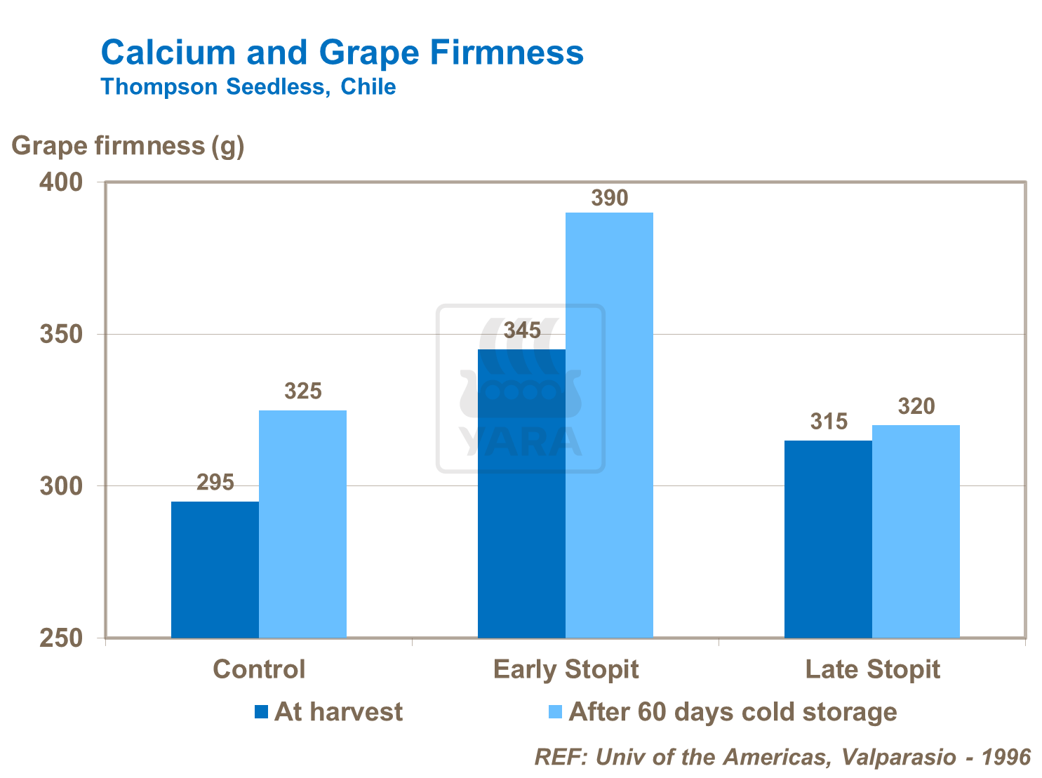 Calcium applied as calcium nitrate increases table grape berry firmness. Use of calcium also improves skin strength.
