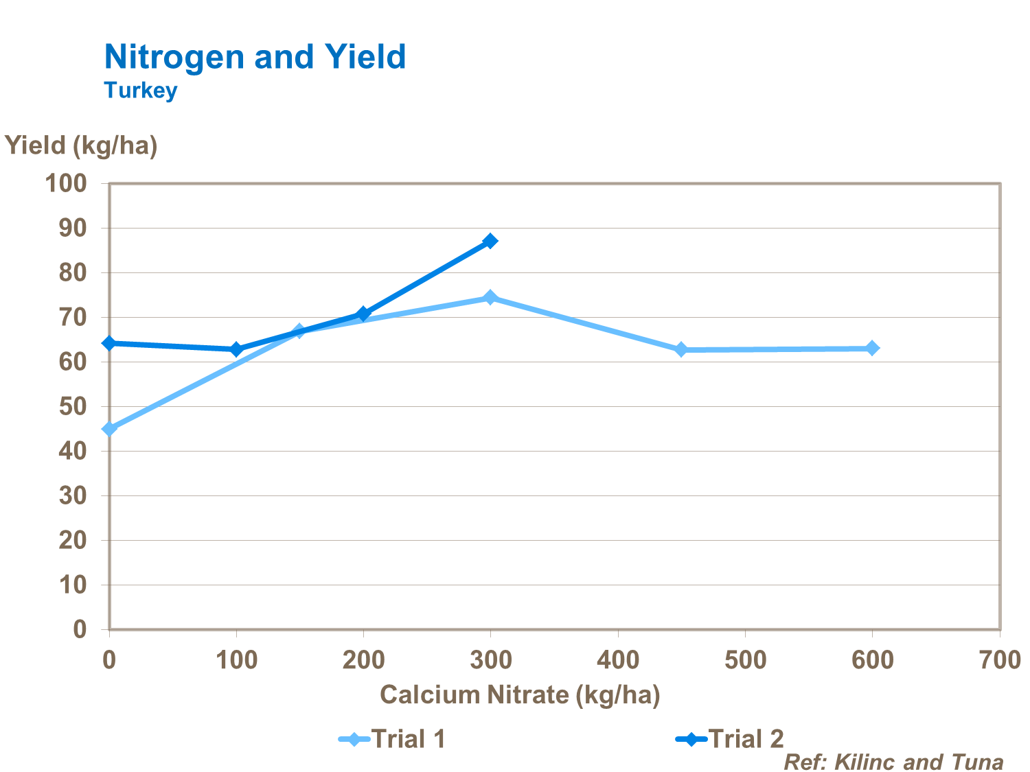 Nitrogen is one of the most important nutrients required for optimum crop growth and high tomato crop yields. Tomato crops remove around 2.2-2.4kg for every tonne of fruit produced, therefore high rates of 250kg/ha or above are needed for average 100t/ha field crops. However, too much nitrogen can depress tomato yields, so it is important to confirm rates following local trials.