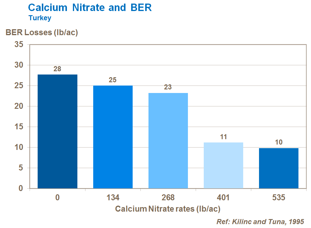 Over use of N-ammonium will prevent tomato from uptaking other important nutrients like calcium; in this situation the risk of BER increases. Problems are worse when ammonium is used after fruit set and when crops are under moisture stress.