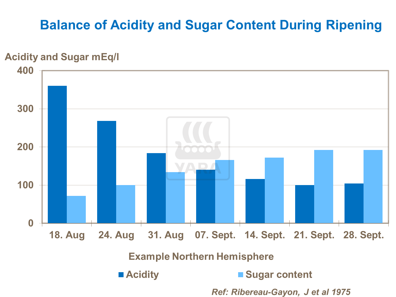 Crop nutrition is very important for the formation of malic and tartaric acids. Potassium applications serve to increase the malate and potassium concentration in berries.