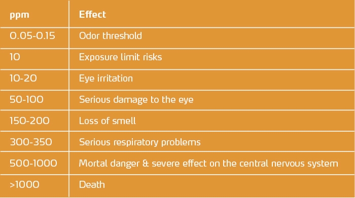 | Hydrogen sulphide is a poison that has a broad-spectrum. It attacks and paralyzes the nervous system and blocks cellular respiration. At high concentrations, a single breath is deadly. | H₂S is extremely flammable. It forms explosive mixtures with air. Contact with oxidizing products can be a source of fire and explosion. | Hydrogen sulphide gas is insidious. Heavier than air, it can accumulate at low points in buildings at pumping stations and treatment plants. It forms pockets in stagnant wastewater and releases lethal amounts of gas when the wastewater is moved due to the flow in the pipes. It paralyzes the olfactory nerve and thus thwarts the body’s natural protection against it. |
