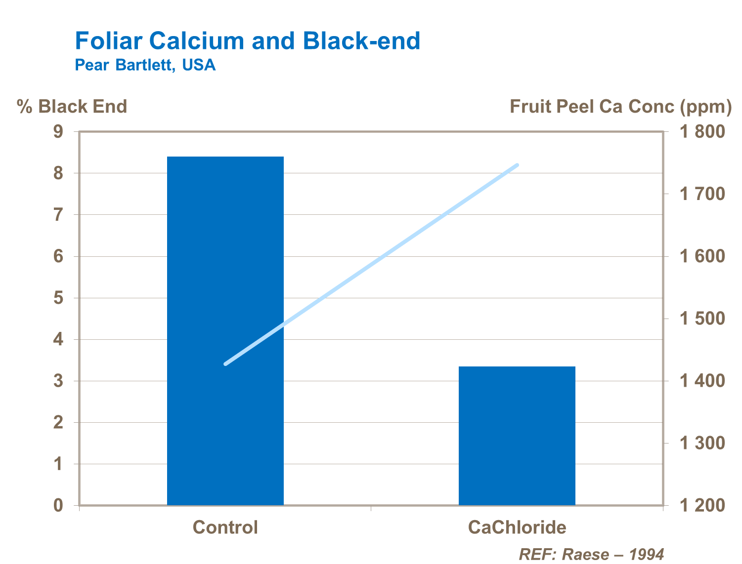 Both foliar and soil-applied forms of calcium have an effect on cork spot and alfalfa greening and it is widely accepted that the N:Ca ratio needs to be maintained at 6 or below in order to minimize alfalfa greening in pears.