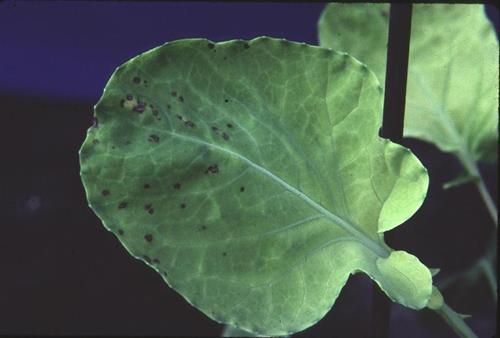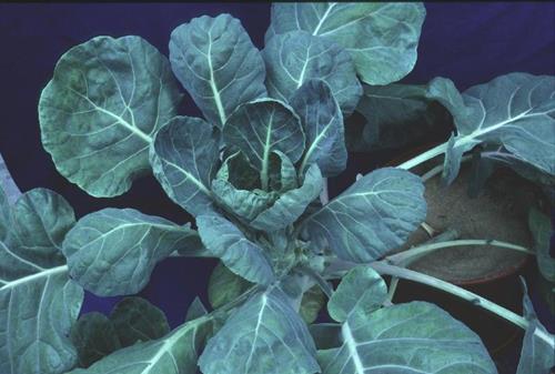 Interveinal fields of medium leaves brighten whereas most veins remain green.