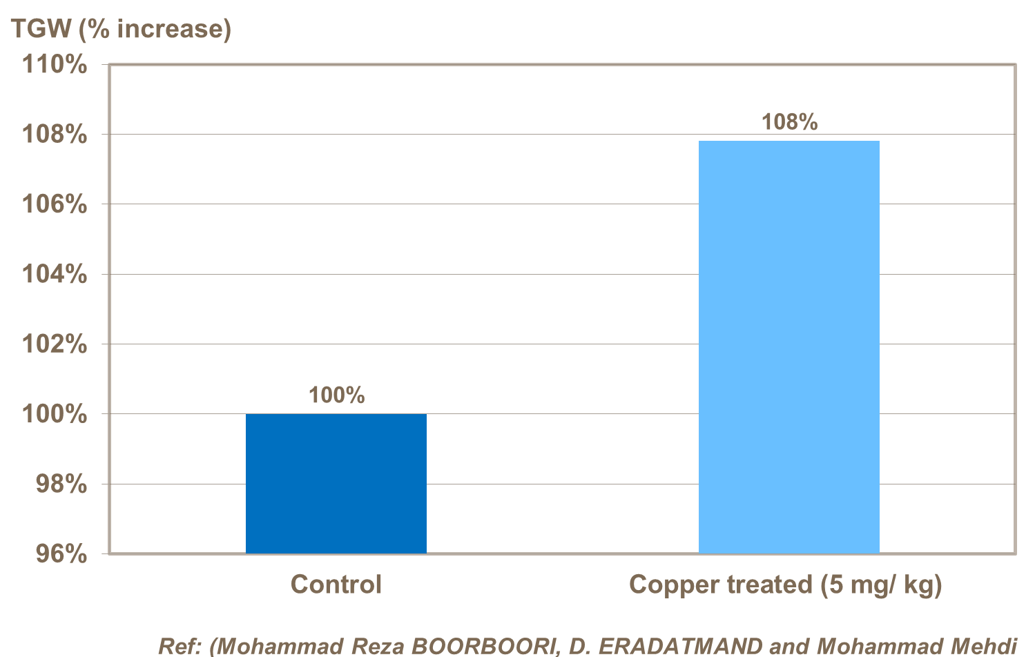 Des études ont démontré que les micronutriments de zinc, de cuivre, de manganèse et de bore ont tous augmenté le poids par mille grains (PMG) dans l’orge.